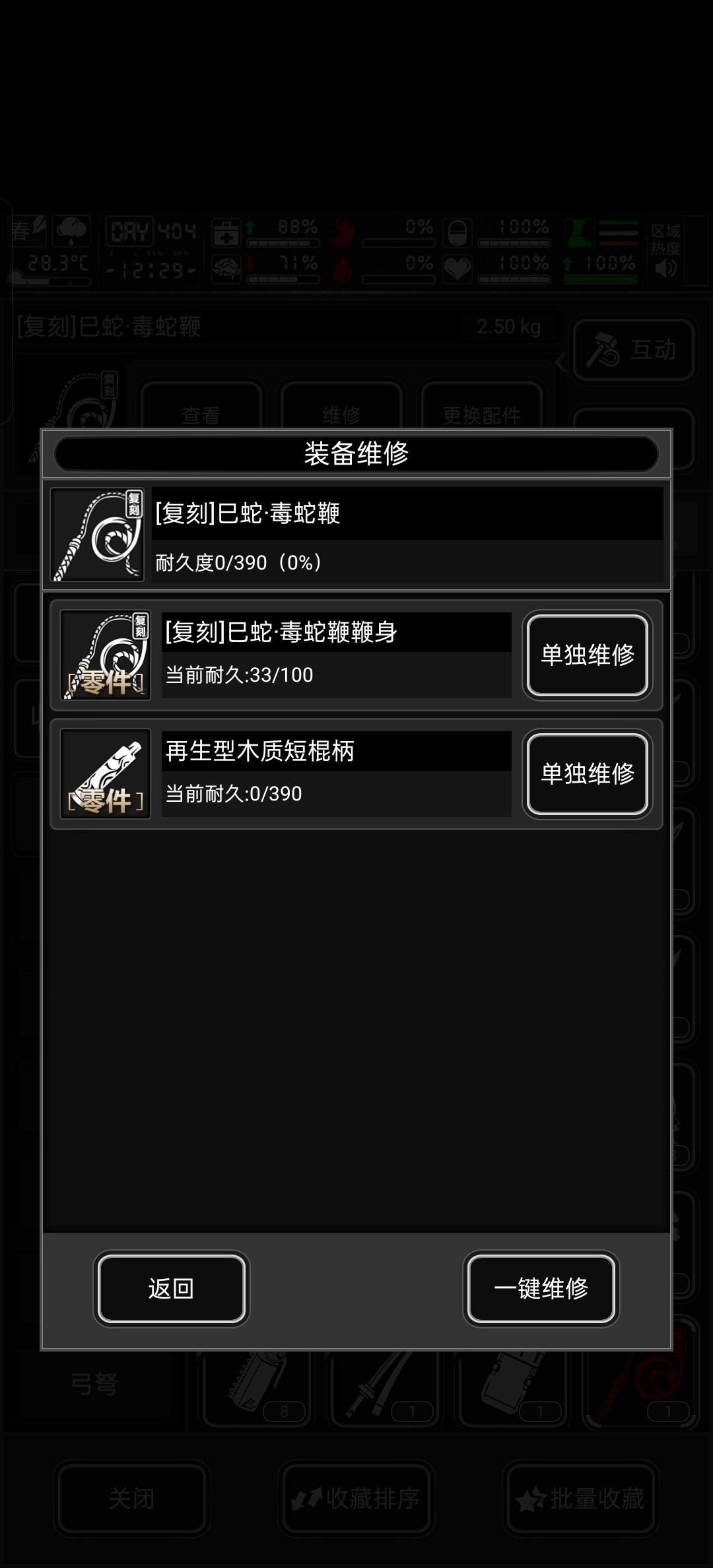 龙鞭+消音步枪。只打小天使、虫群主宰、枯木、电子鼠。一根鞭子用完打了38个七血。关闭场景切换储存。进尸潮就只在前两行走,只打以上四个。如果小天使、主宰较远,先消音步枪打一枪引过来,在鞭子抽。打死直接出去,有自动捡物的。爆了储存,不爆关游戏重进。我没有蛇鞭,(那时候蛇鞭还是一坨,没加强)怕6修跟不上。一入尸潮,把较近电子鼠、枯木点死。反正一两颗子弹的事。总会有惊喜的(出了20多块高密,若干活性木。