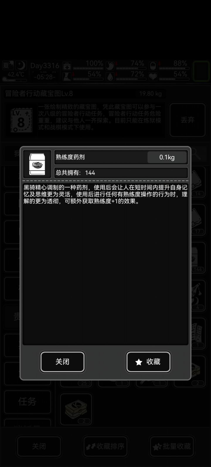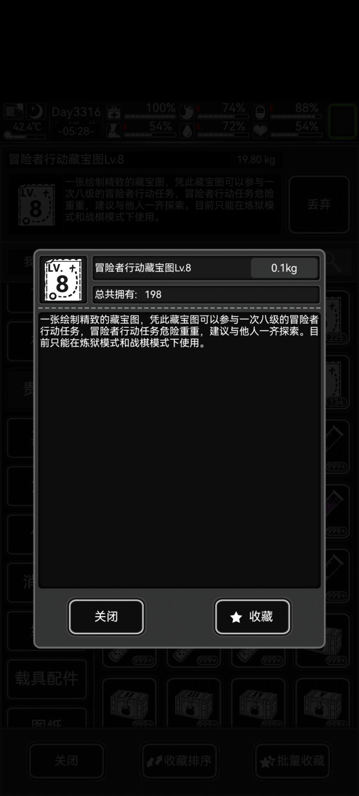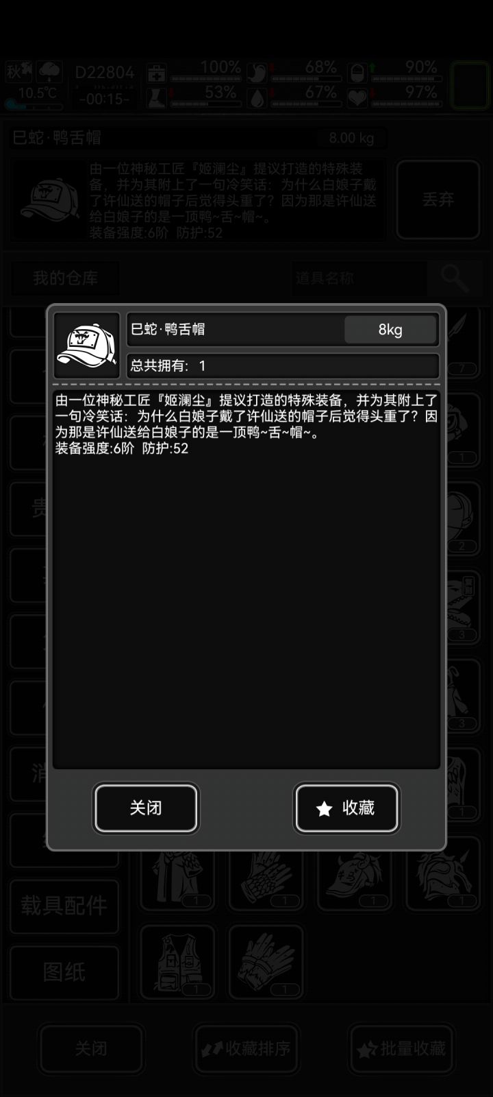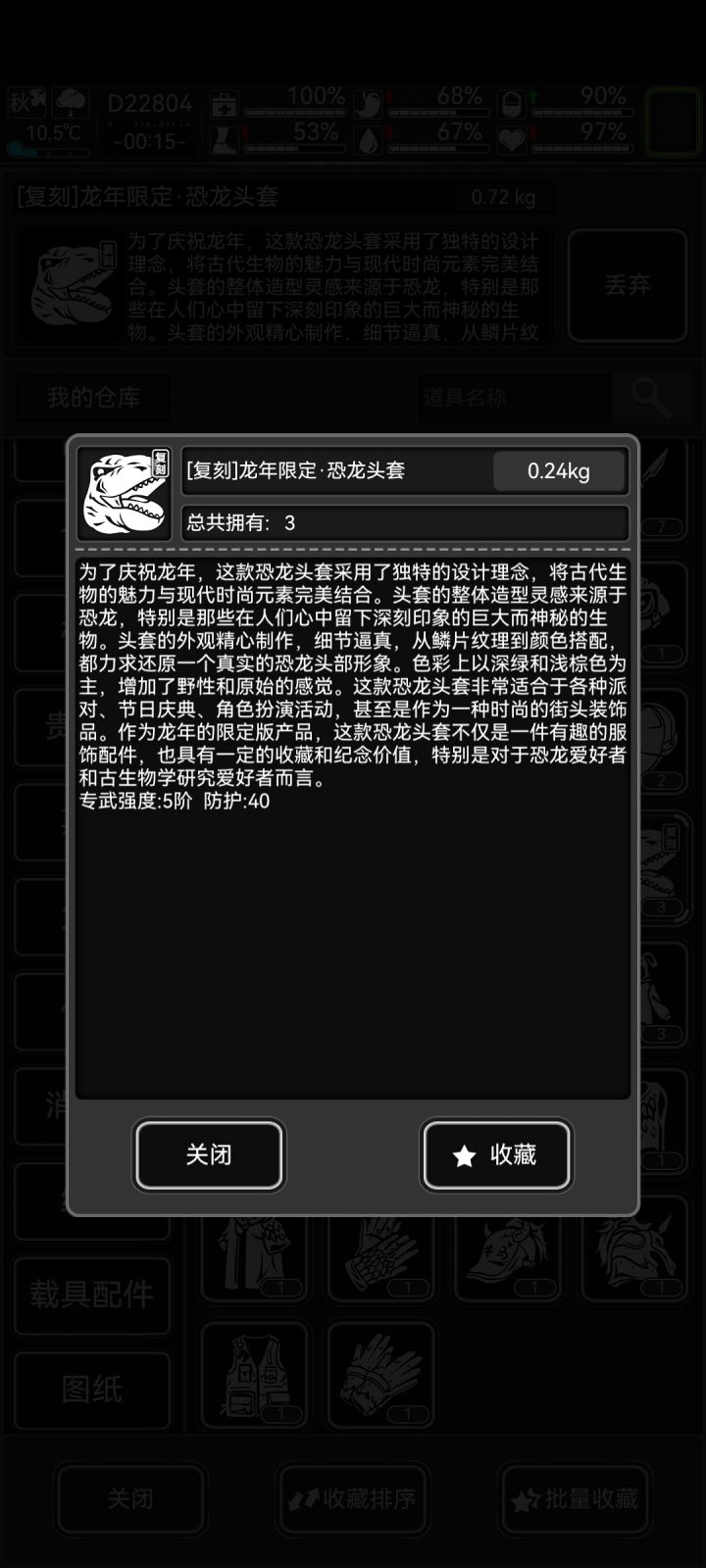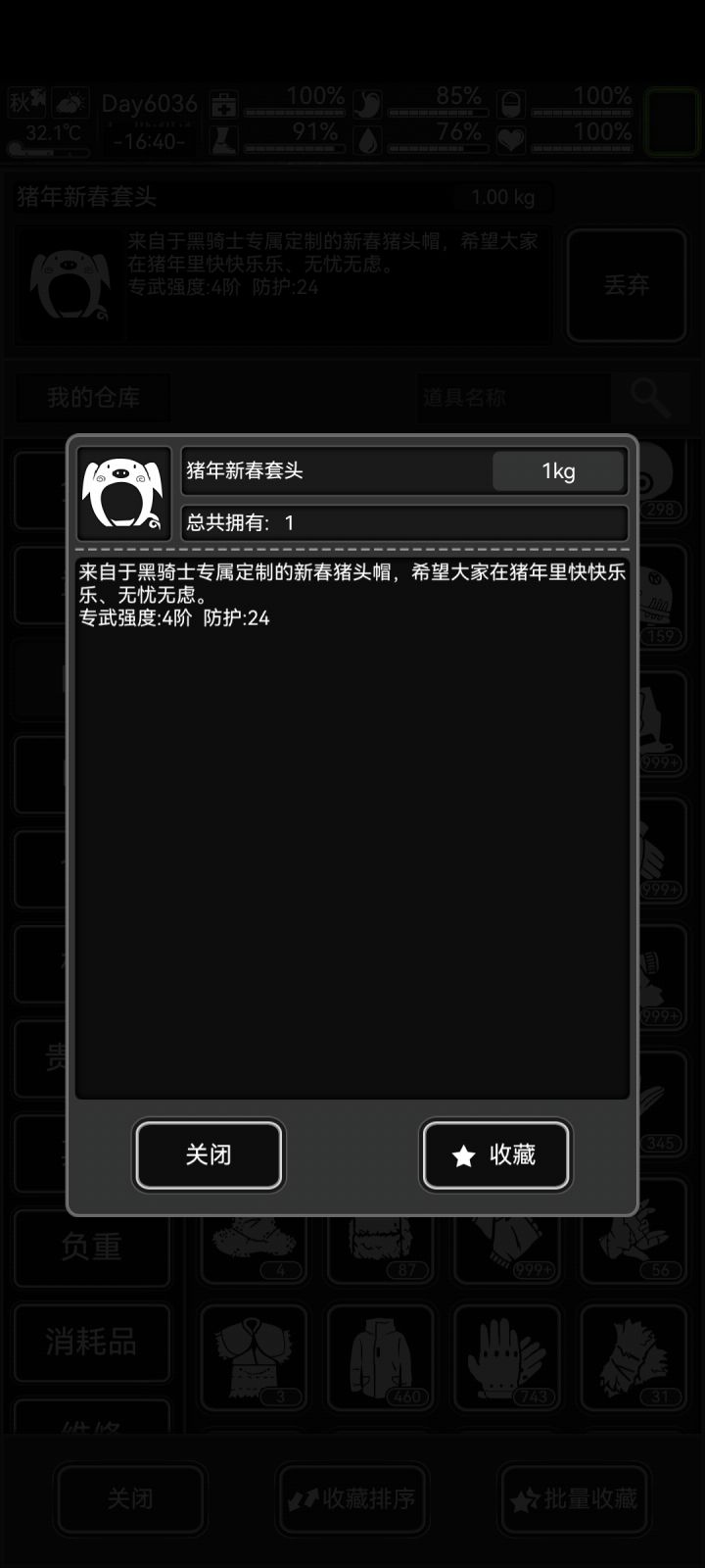 18年玩过几个小时,那时候还玩不转。就在去年很巧想找一款类似的游戏,想起来了“活下去”,又很巧碰上了国庆活动,就回归了!到现在也有666.6h了,不过实际时间应该会更多一些!小小纪念一番吧,希望“活下去”能够在这个大环境中继续更好的活下去