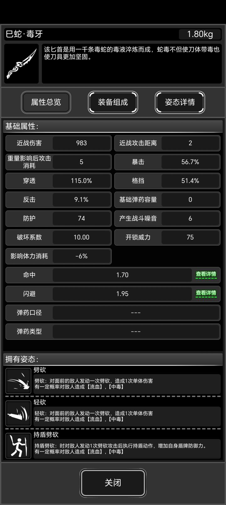 美杜莎:新城入门武器 龙年兔年限定武器没人雇雷峰塔:兑换5个约等于 远程 无限控制 高输出蛇矛:削弱后依旧是控制神器 多换最好 不换后悔鸭舌帽:抗晕 闪避多维度胜过龙头 蛇头 蛇手:低伤害高射速武器威力翻倍蛇包:防御同马包 基本告别中毒蛇巴雷特:附赠增加坚固度组件 当前同品中最强蛇rpg:附赠火箭炮弹夹 需求大 也没有替代品蛇刃:附带零件耐磨涂层 最强刀尖配件之一熟练度药剂:稀缺