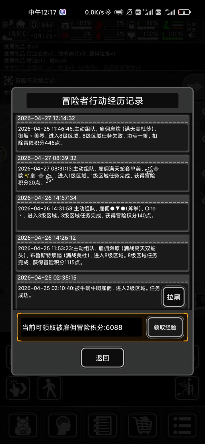 没有接取过8级任务,怎么活动经历显示接取过?图片中已过期的8级任务是主动取消的,因为不需要防具。这搞得,莫名扣除冒险积分,还被关六个小时禁闭