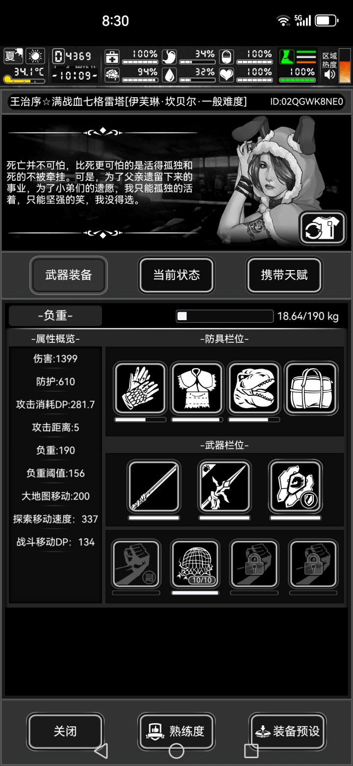 目前马年没有熟练度。这个面板还不错,属性面板大部分属性还行。就是反击太抽象了。dp也有点高。有一个没有CD的直刺姿态,可以打一排的五格敌人还行。还有一个没有CD的横扫姿态。其实还不错。不能持盾。维修也算便宜,大概也是一个六修左右的成本。我的评价是放在活动武器中不上不下。差不多跟金蛇剑坐一桌吧(金蛇剑可以持盾)最大优点是有五格攻击距离。这种属性面板要是给原本能量产的原本长矛武器的话