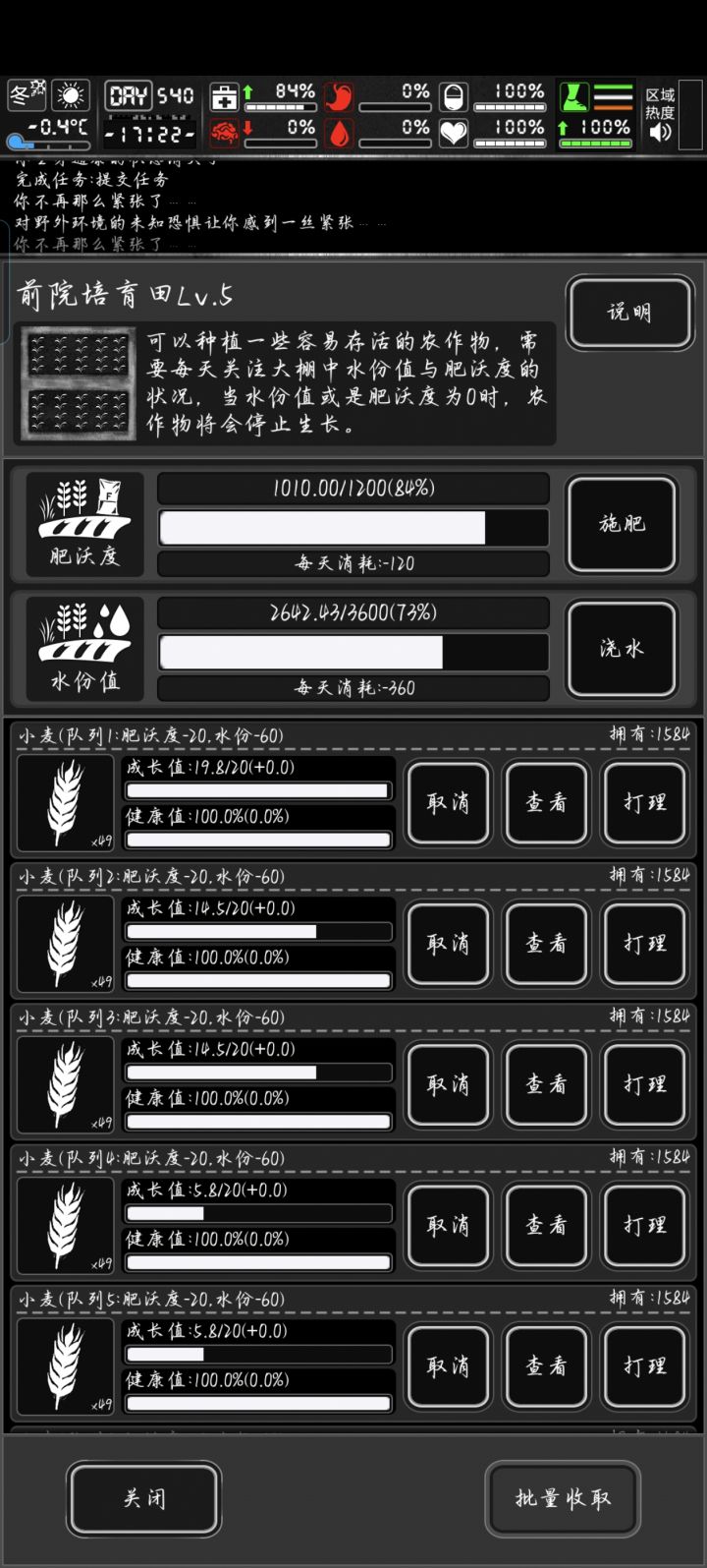 前50天1.污染圈和安全屋尽量都在地图中间不在可以删掉重开2.前期生存主要是缺水所以不要修门锁去触发盗贼任务(这点很重要后期也用的上)满噪音盗贼蹦迪可以大量获得水3.战旗不缺食物一般推荐春种药草,夏天不种(耗水太多),秋种草药多做点精造烟(可以当货币),冬天可以种土豆4.前期跑商老玩家可以靠寄送(一次送3000个医疗蛋)新玩家去尸潮打六血然后拿血搬雏胖用胖子那的医疗买其它商人(米姐全买,爱