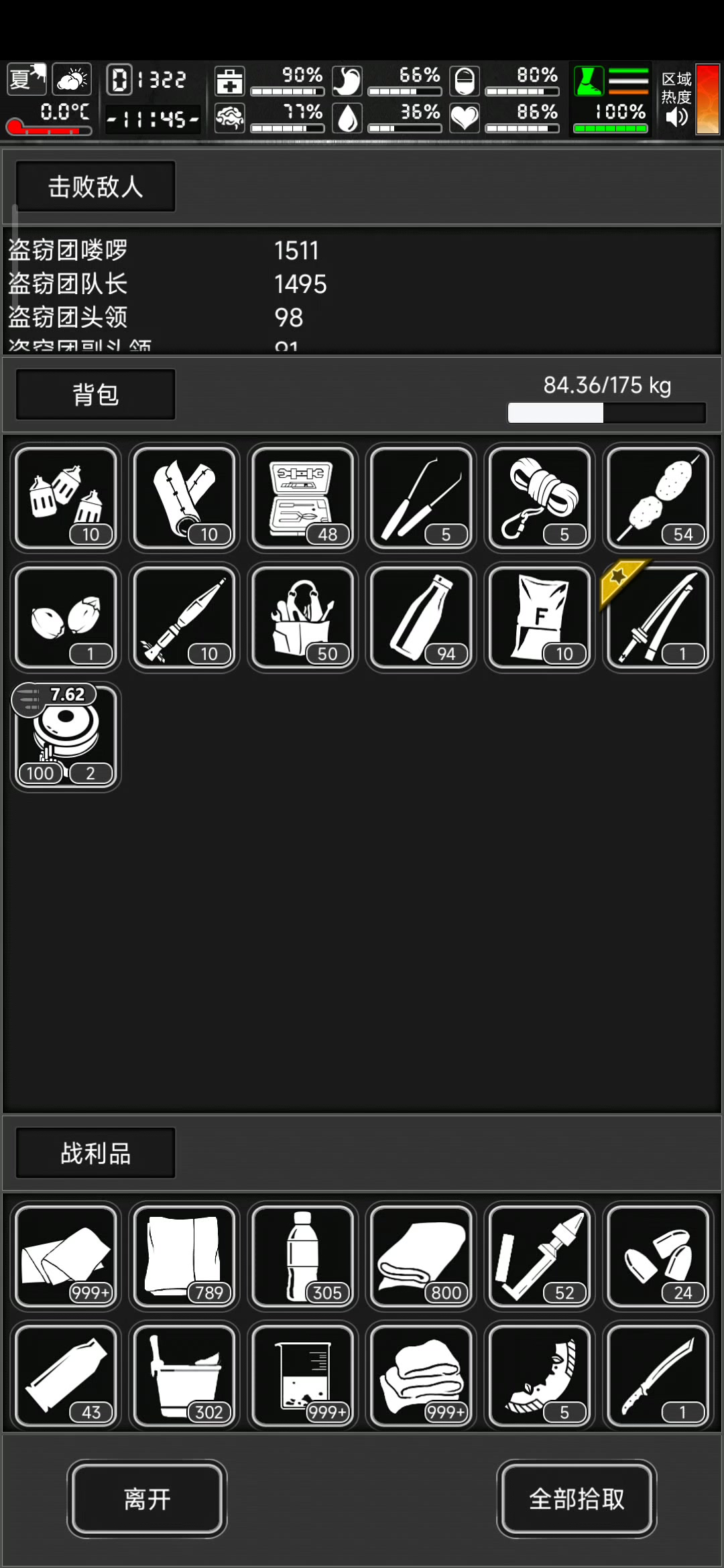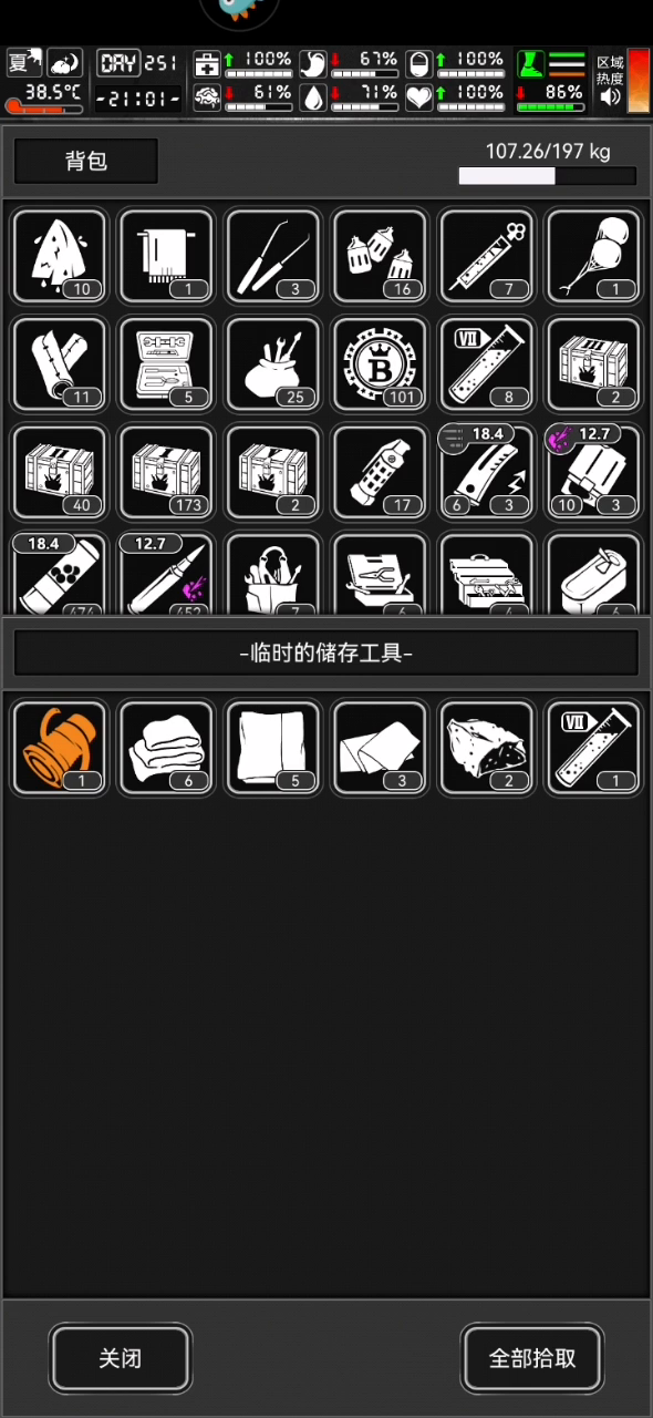 一160天+,消耗500+土豆,500+水,50+烟酒污水,马刀特种橡胶短棍十几个,消毒绷带20+,混合草药汤50+,湿毛巾50+防具耐久除了熊皮大衣和披风一个简易修理包修熊皮大衣,其他都是掉落物 掉落污水过万就停了,其中1000+瓶水,因为拿起来喝了。