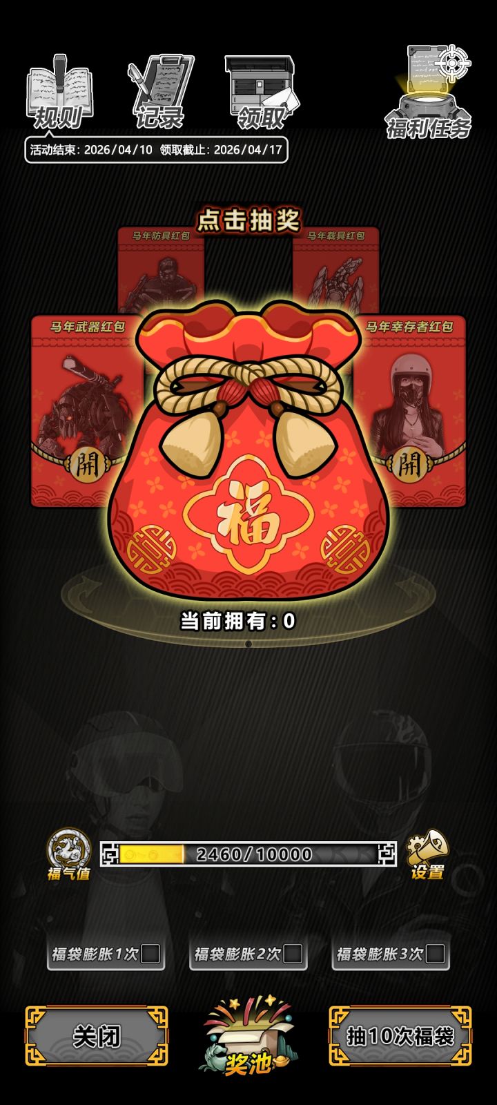 福袋红包活动都是前年龙年活动的形式,大概是素材复用所以今年活动没拖到年前一两天才上(笑)看到论坛有人蒙圈了简单介绍一下活动怎么搞。福袋:完成任务或者40信用点直购由于抽取红包和时尚小垃圾的基础奖池红包:分四类奖池用于抽取相对有用的物资以及最终目标——自选礼包自选礼包:能自选兑换年限活动物品福气值:每使用一个福袋或者红包获得40福气值,可以消耗福气值膨胀福袋或者重置奖池。这里只推荐膨胀3