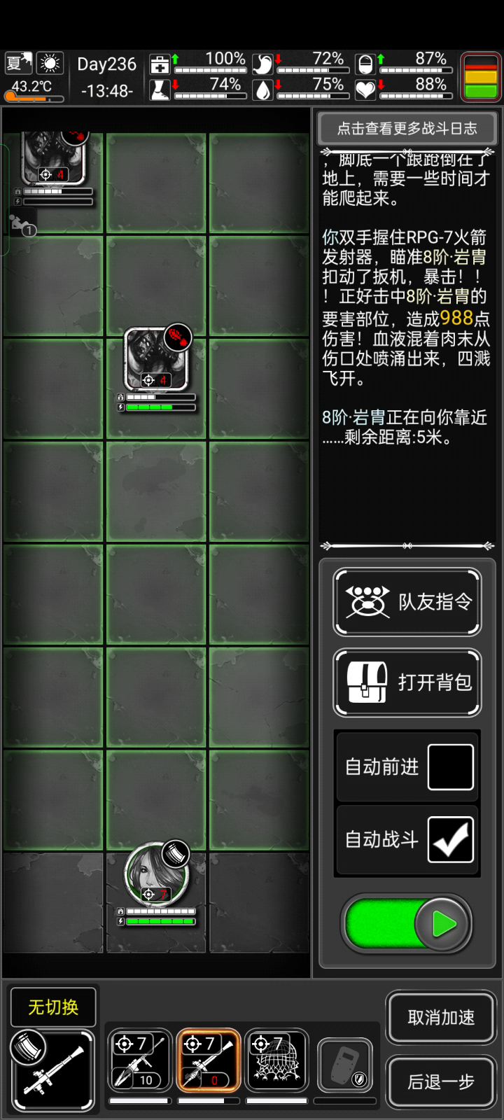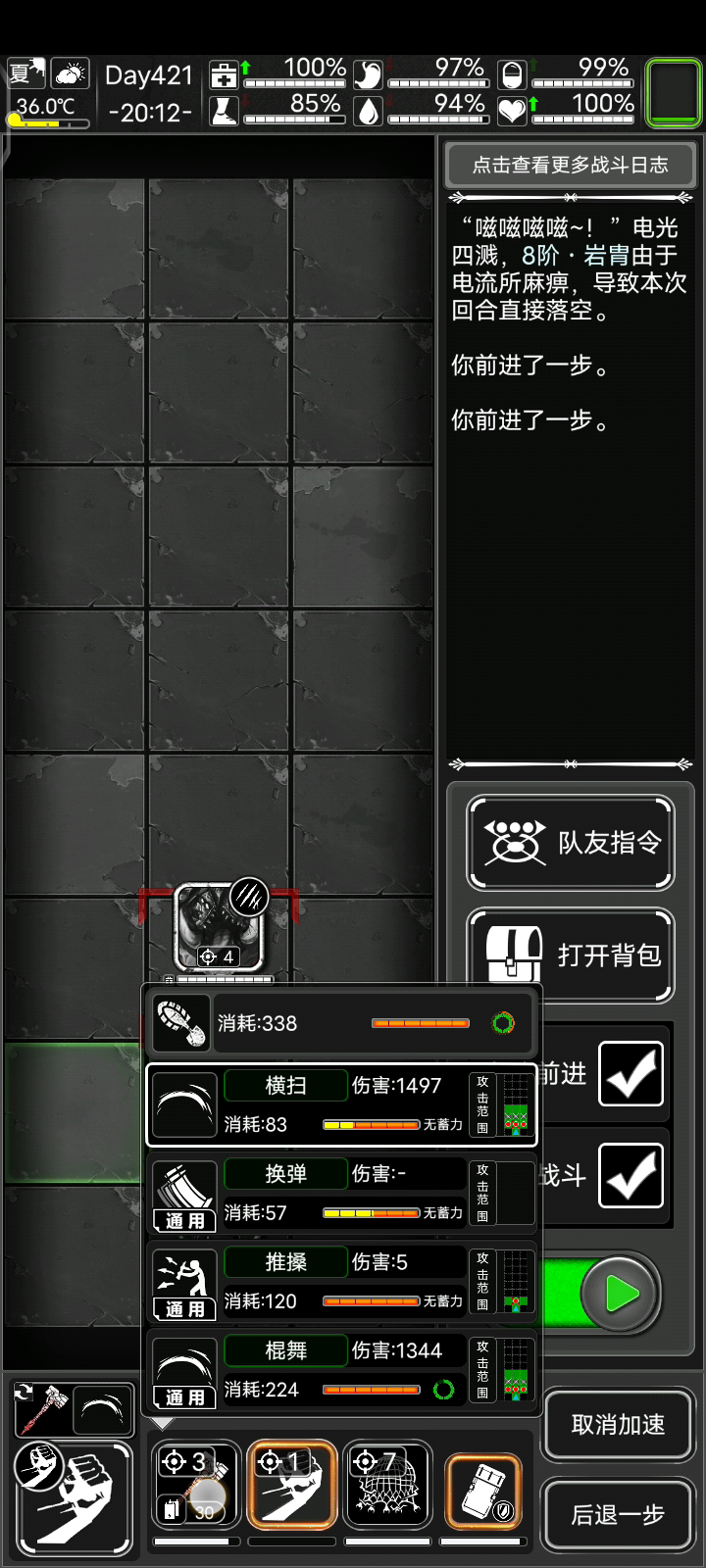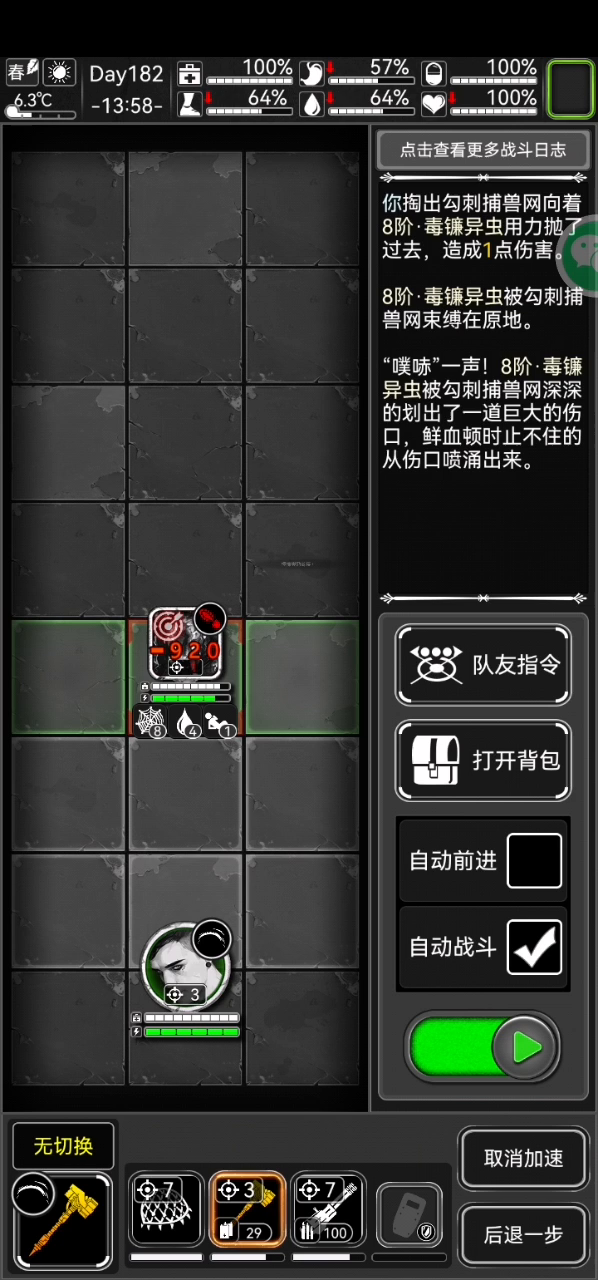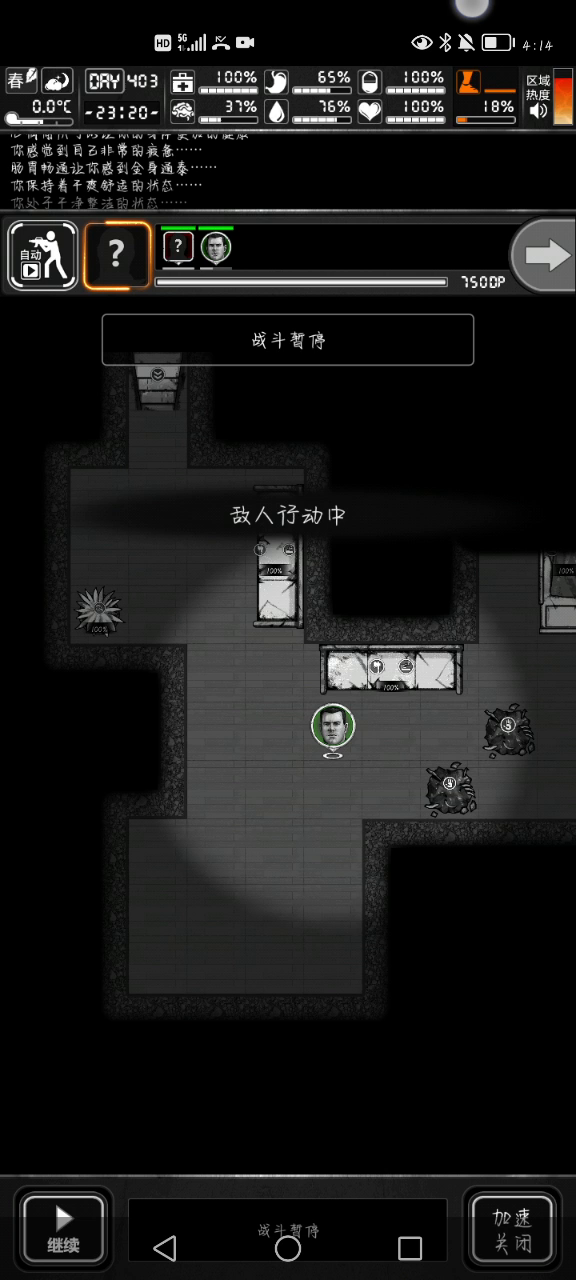 这个地方是由于有一个,怪物卡进了墙里面,当我的行动读条完毕之后,怪物无法活动,导致战斗卡死