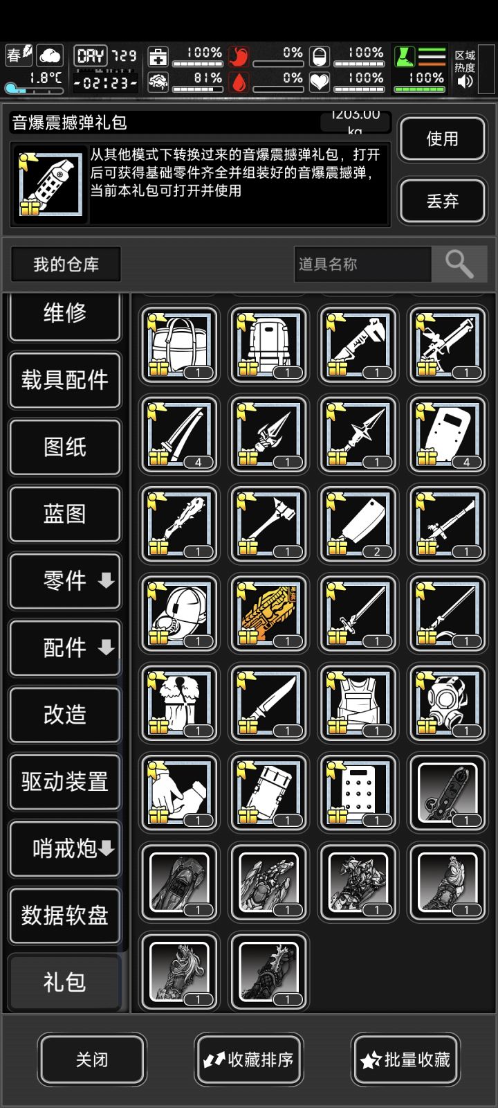 高碳链c马还有电锯把手的出货率是真的太高了,才200天,现实里,疯狂刷了两天武器店就出了五个高碳链和三把c马,三个电锯把手,武器配件估计就差个大油箱了,接下来的目标就是在300天之前把全部的图纸都给搜到