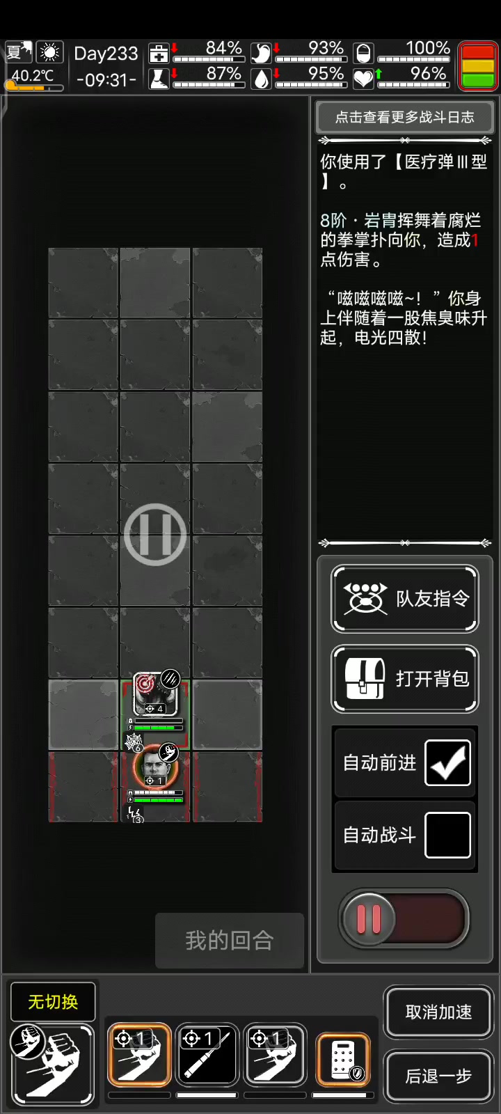 第一次玩不知道怎么打 就带了九十几手枪子弹 打完还有大半管 又不甘心 就用电网加猎刀慢慢磨了 虽然没有六血 但毕竟是第一次😝😭