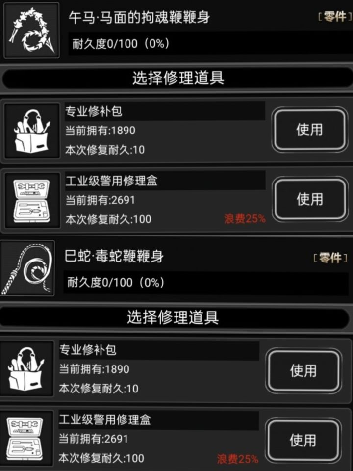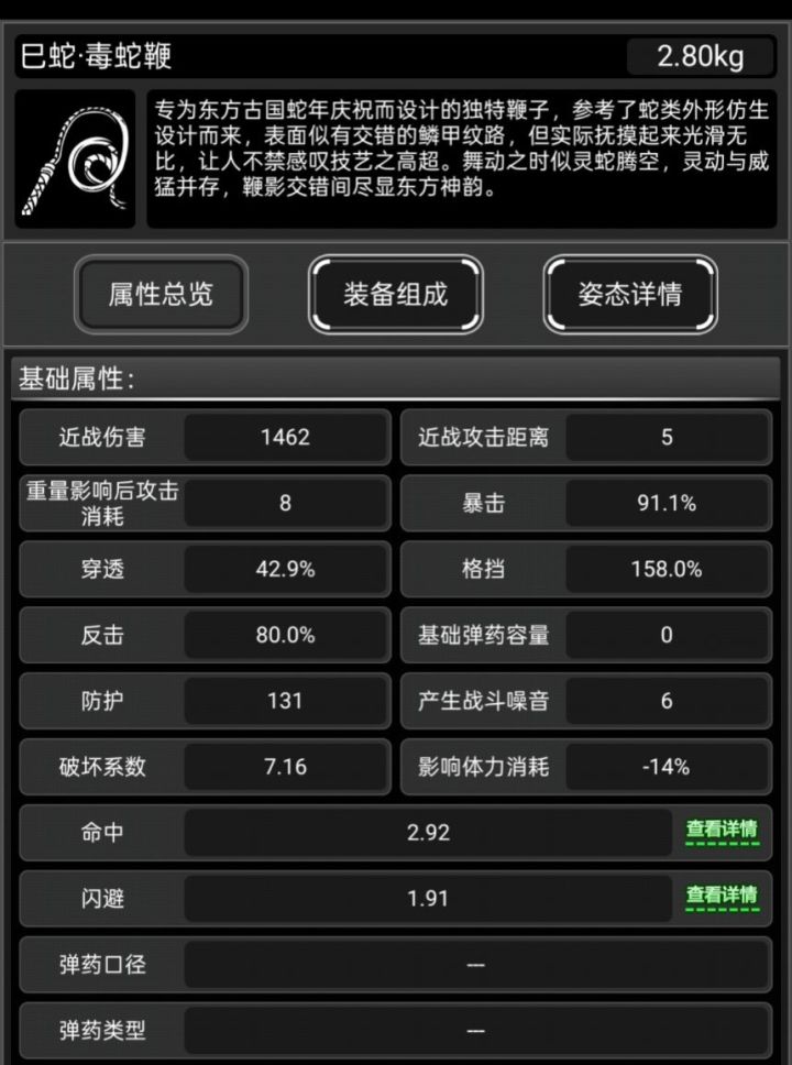 无熟马鞭便已拥有7熟蛇鞭同款属性,同款维修成本(一个六修修满)。自带技能目前伤害比不过蛇鞭,但范围更大,且比蛇鞭技能多一个束缚buff。等马武熟练度一出,马鞭将成为蛇鞭完全上位。(龙鞭还能靠稀有的麻痹属性破盾,蛇鞭的中毒属性可没什么用)