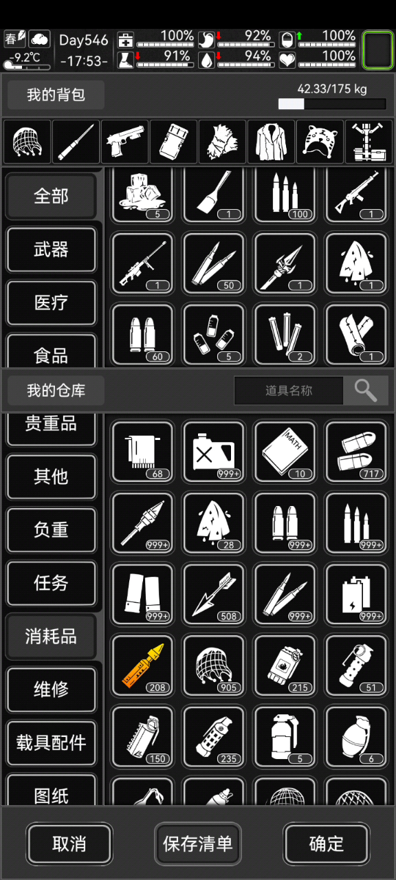 这次更新物品重量是不是变了?出门负重比以前多了不少,还有每次出门怎么都会多带30发手枪子弹啊(●—●)