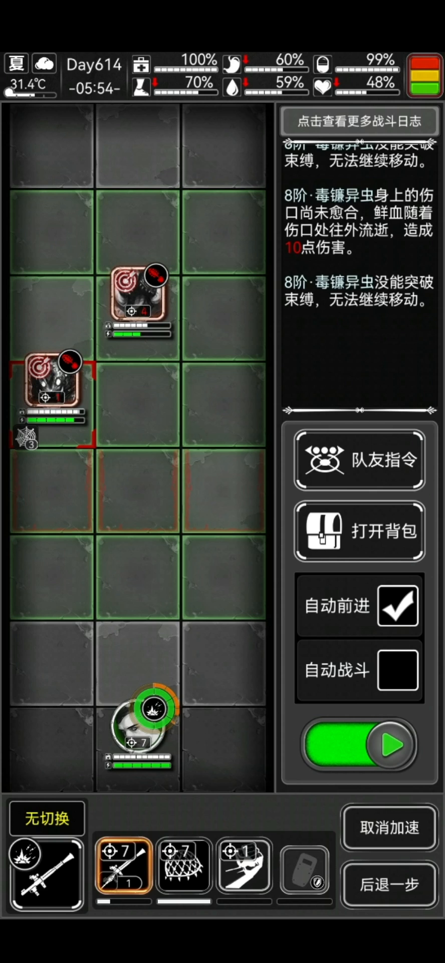 开局震爆弹一下,前进一步,然后每只虫子上网,接着换rpg后退卡行动条蓄力,蓄满了打一发。接着看虫子击倒情况,要是全部虫子倒了,就换个蛋接着蓄力满打一发;要是有没倒的,就不要换弹直接蓄力满换蛋然后打一发,再看击倒情况,要是还有没倒的,就上网子,rpg不换蛋直接蓄力。 一定要保持行动条一直有溢出的,这样才不会被突脸,要是溢出行动条快要用完了就赶紧震爆弹,接着重复以上操作即可。 打法大概就是这样吧,可能我描述的有些不妥,结合视频看一下。视频是我蹦迪遇到一只虫子和一只岩胄,打法也差不多,之后凑到3只虫子我再发个视频。 大家多试试,熟练掌握对行动条的估计,祝大家早日石头999+