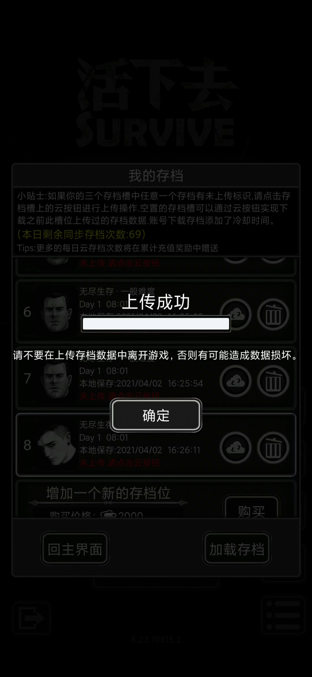 等下开新存档上传,省的后悔有机会找回
