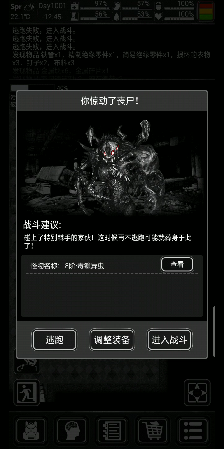打移速比你用武器快的丧尸时,假设你攻击距离为三,可在对方移动条快到4时切出攻击距离为三的武器(长矛),然后丧尸朝前走一步,离你四米。此时你的攻击条已经往前走了一小段,由于丧尸比你快,你会发现他的条追上了你的条,最后先你一步到达你的武器范围。