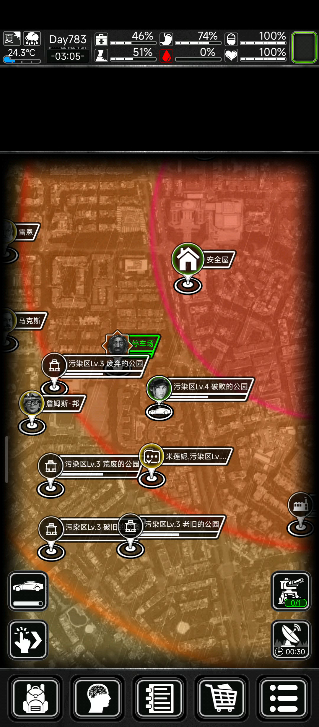 核心在六个满水量公园(尽量挨着,减少行程)。更污浊的水合成饮用水只要两瓶,相当于去一个公园就接10瓶饮用水。