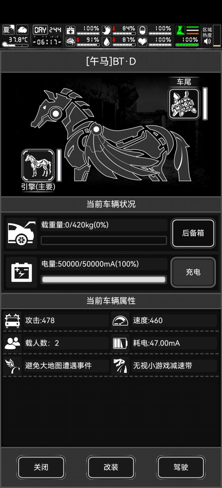 如图,而且面板真不差。我这电车引擎一直没刷出来,别的应该都满配了。如果上z8是199攻447速12耗电,上as就是254攻512速33耗电。极速差不多但是攻击高很多了,能一头创死大部分怪。(无天赋)就是不能台修有点贵。反重力部件中高级维修是+277/+6054(上限3w),能源核心部件中高级维修是+144/+3145(上限3w)。(无天赋)看看新活动有没有部件能换。
