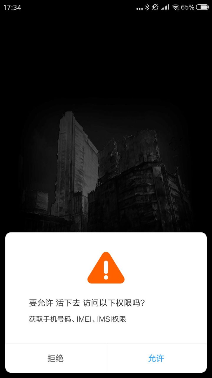 首先活下去只要了一个获取imei的权限!然后在排行榜上随便找的两款游戏活下去只要了一个imei的设备码权限。我这边其实下载了多个游戏。由于篇幅问题不再放出。结果也非常明显,我们没有要一大堆权限!也并非我们一家游戏需要imei的设备码权限。对于玩家反映的电话权限。我通过百度了解到,不同的手机不同的系统对Android系统权限显示不同。4.0和4.1的谷歌原生系统读取imei和设备,谷歌