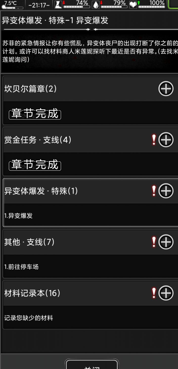 ●任务开始在游戏进行到第300天后,会触发任务——异变入侵●尸潮电台被锁住此时你如果触发了尸潮,无法向别人求救,只可以自己打,或者快速完成任务。而且此时你的尸潮电台无法打开,也无法去打别人的尸潮。♥但这里有小技巧:1.任务开始前已经存了别人的尸潮,可以在电台的更多信息里打别人尸潮。2.有别人的尸潮码,可以在电台的更多信息加入尸潮,可以打别人尸潮。3.在另外一个档进入尸潮频道打一下保存