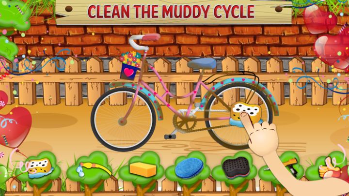 周期洗游戏旨在让孩子们和那些人们想要骑周期。当我们的孩子,想玩的玩具然后最爱就是循环。我们跟我们的朋友在城市的街道上比赛。后跟朋友玩我们周期变得混乱,又脏又乱。我们的周期需要保护,我们必须洗便可重新使用它