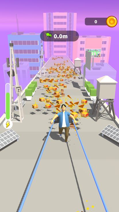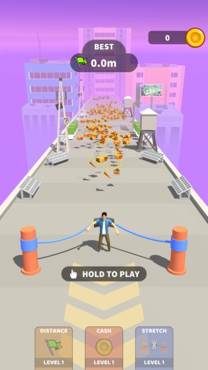 Stretch with the slingshot as much as you can and eat foods as much as you can while stretching, and get fat well. Throw him to demolish buildings. The fatter are better, the more damage you can do. Make money, Upgrade and continue for bigger buildin...