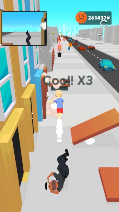 While running, reach out your left hand and press the bells of the houses standing in a row along the platform on the left.