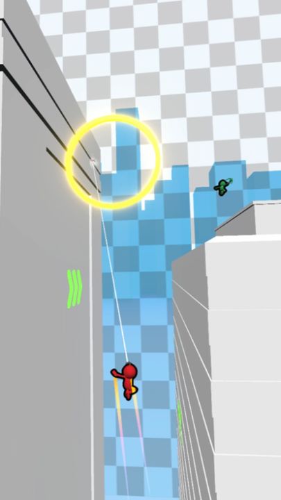 Push on the hook at the right-bottom corner of your screen to activate your hook! Swing around the blocks to be the fastest to reach the finish line!