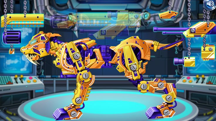 现在越来越多的孩子们喜欢恐龙,对于有些孩子来讲,他们尤其喜欢剑齿虎。今天在我们全新的组装游戏里,你将有机会来组装一只非常神奇的剑齿虎,这只剑齿虎具备许多的武装技能。赶紧来和我们一起组装吧。游戏开始前,我们会向你展示一下这只剑齿虎的整体形状,你需要记住它的每部分特征。接下来,就可以开始组装剑齿虎的头部了。剑齿虎的每部分安装我们都会呈现给你一份虚拟图,同时组装剑齿虎的各部分组件会用铁链悬挂在空中,你需要依次选择各组件来完成头部的安装。接下来用同样的方法来完成剑齿虎身体部分和四肢的安装工作,最后是尾部...