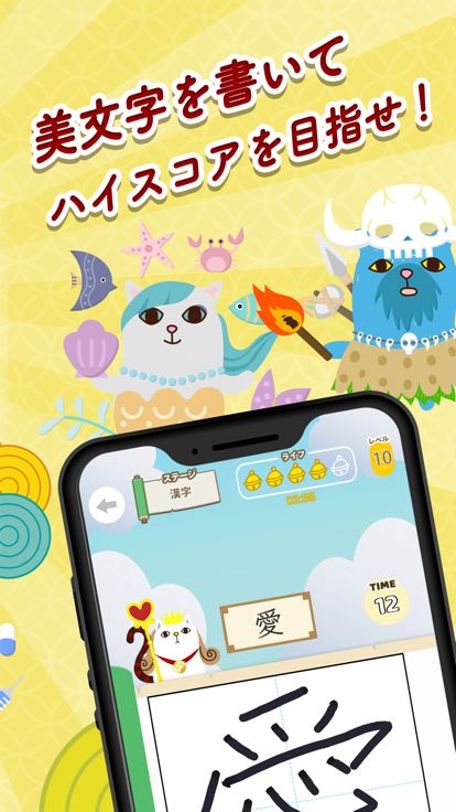 「美文字の巨人」はスマホで美文字を手書きして、アイテムをゲットしていく単純なゲームです。