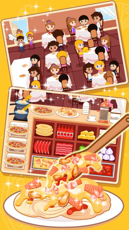 客人走进店,首先服务员要安排客人坐下,然后厨师要按照客人的要求,为他们做美味的披萨意面!不过要提醒厨师,客人的等待的时间是有限的哦!