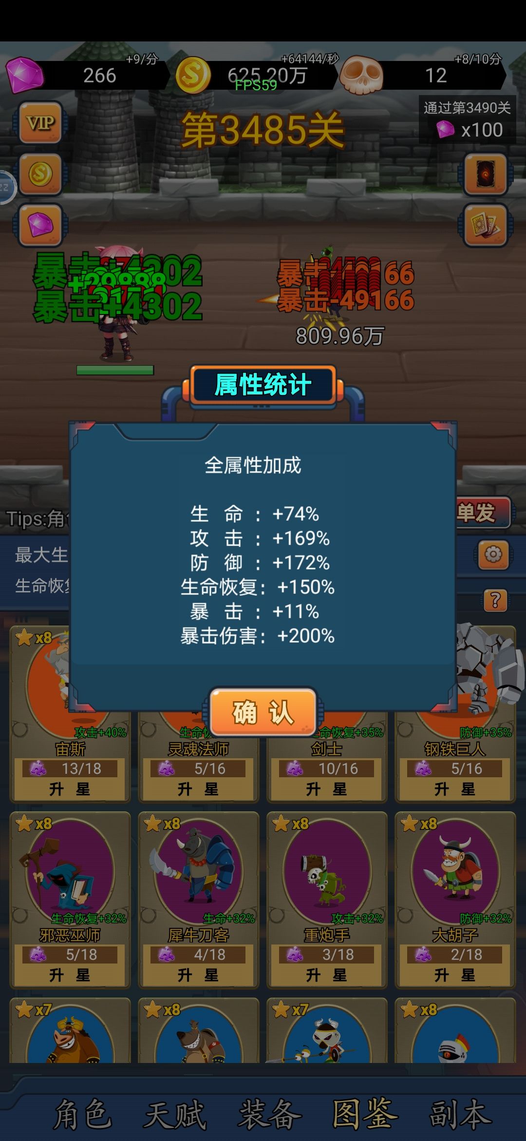 3485关了,主防御,副攻击,在生命恢复,生命值不是很重要,遇到五个攻击低一点的扛着就能过关,神器,攻速与暴击是叠成关系,所以用攻速神器,等到爆伤倍率高了可以换爆伤神器把,吸血必带。