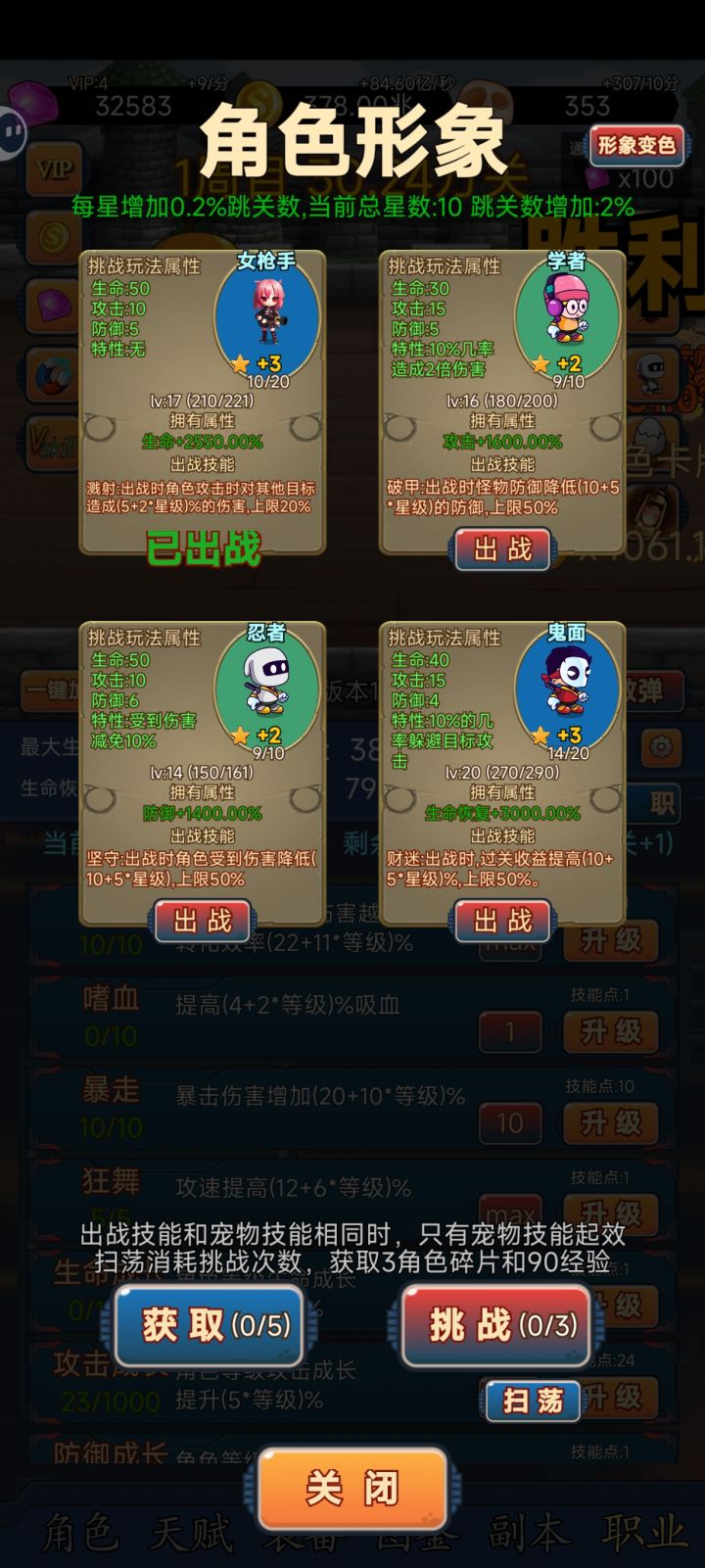 主攻击防御,副生命,剩下的有神器吸血暴击,其次就是天赋一般是攻击暴击防御,然后就挂机副本和离线就可以了。