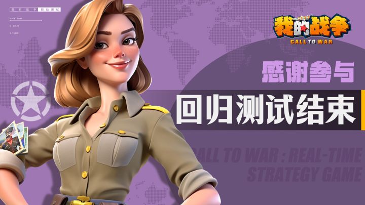 尊敬的统帅:感谢您参与《我的战争》新版本「回归测试」!本次安卓平台删档计费测试将于7月3日23:59结束,届时服务器将关闭,请您提前记录好参与测试的渠道和登录账号,以便在正式上线版本中领取「回归测试」奖励。这些天我们收到了大量统帅反馈的意见和建议,我们会认真听取,优化大家在未来正式版本中的游戏体验。对于统帅们关心的指挥官系统、阵营数量和特色、兵种平衡性和游戏稳定性等问题,我们也将在下一阶段重
