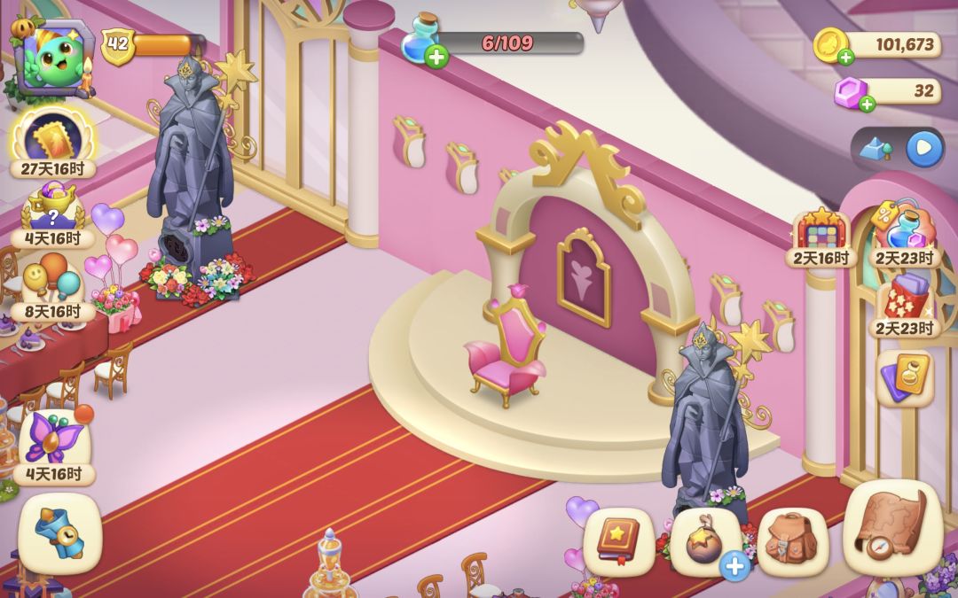 今天刷地图做到寻找水井,谁知道通往水井的路,被一大堆好像黄色的大蘑菇挡住,点击显示5个锤子才能解锁,心疼了好久终于把这个路开了,谁知道又需要5把斧头,斧头锤子是可以开活动地图体力的钥匙啊,你要了这么多,我都不想做主线地图了。