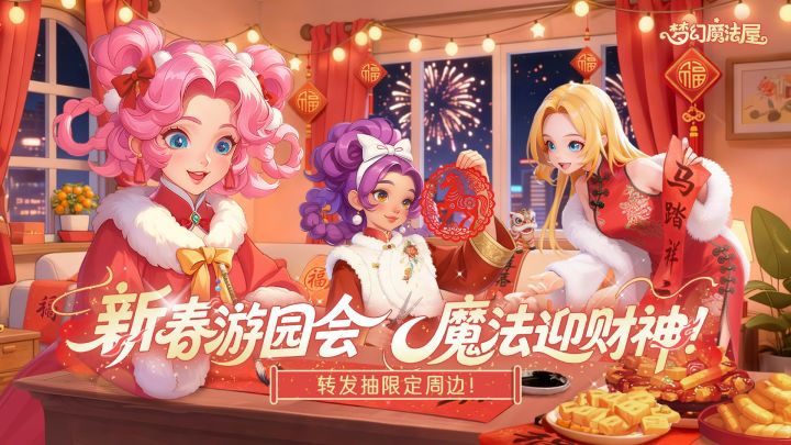 「新春游园会 ,魔法迎财神」主题版本上线!转发赢好礼!