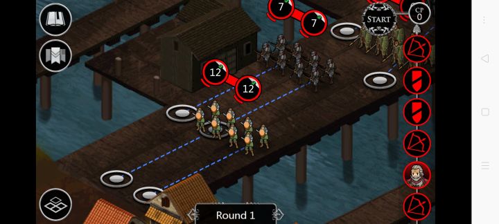 这张是码头地图,通往双子城。总体思路:两侧的泥腿子盾兵解除二连编队,挡住对面的自爆,然后移开休息回血。第一回合中路 民兵和弓箭手以编队的形式向前,中路骑兵绕过那些雇佣兵向前,然后解除左右两路泥腿子步兵编队,(此处简化50字)先移动德雷西乌斯·昆图所在的那一边。移动方法如图:“”图一,正对着东路的那个步兵比较慢,先移动他。注意挪开弓箭手。注意图二,没有正对着左右两路的步兵,需两次移动才能到达