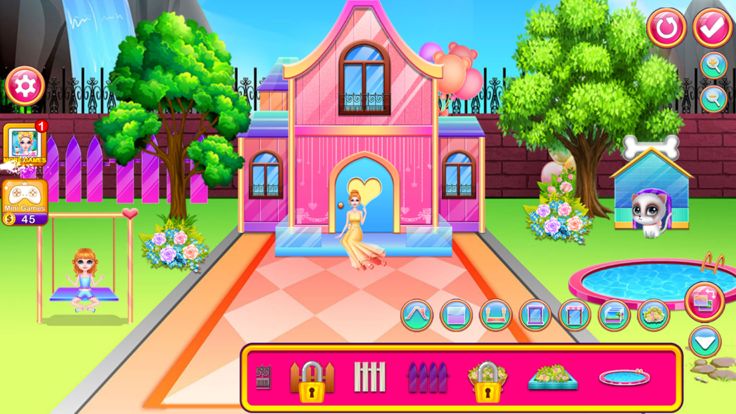 漂亮的公主最近搬到了一所新房子里,她非常喜欢这座房子并且决定仔细装修新家。你愿意帮助她来扮演设计师的角色吗?尽你所能来帮助她装修这座漂亮的房子,把公主的房间装饰的漂亮时尚。相信你一定会从游戏学到许多装修房屋的技巧和经验。最后把漂亮的房子展示给我们吧。