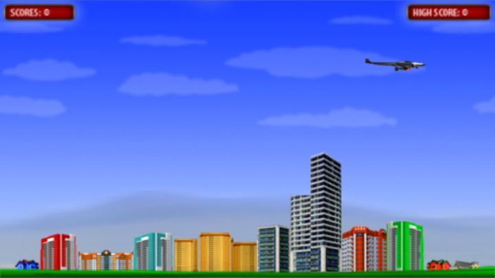 This is a remake of a classic game "Bomber". You are a pilot of a bomber aircraft that drift down over a city and drop bombs. There are two outcomes for you: to demolish a whole town and get to the next level or to crash into a building and lose the ...