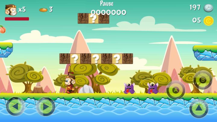 孙悟空到处移动并跳耀,收集硬币与水果,并用他的金箍棒打倒各种怪物。