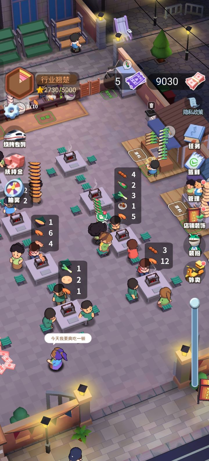 2.还有这游戏中烧烤师傅的烹饪速度,即使拉满还是同时照顾不了3桌以上的顾客,那要解锁那么多张桌子干什么?其它桌子我都不敢收钱,怕烧烤师傅和服务员来不及上菜