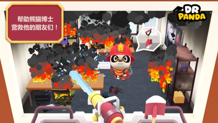 与熊猫博士和他勇敢的消防队员们一起营救受困火场的小伙伴们!冲进燃烧的建筑,使用正确的工具清除障碍物并扑灭熊熊的大火!
