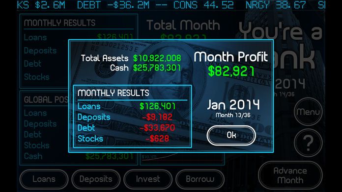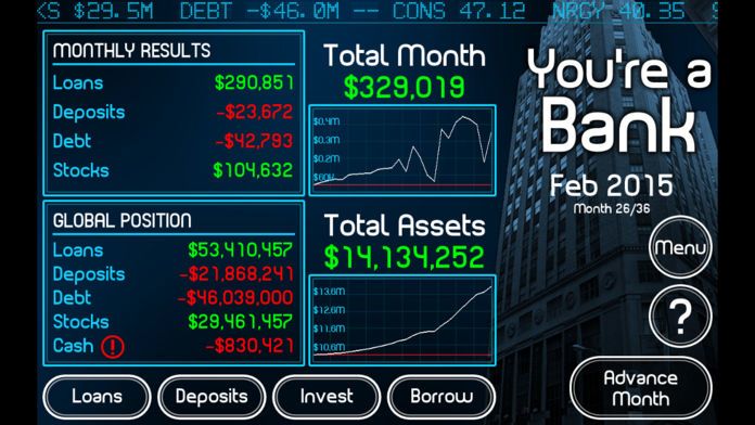 Maximize your profit by adjusting interest rates, playing in the Stock Market and borrowing from bigger banks.