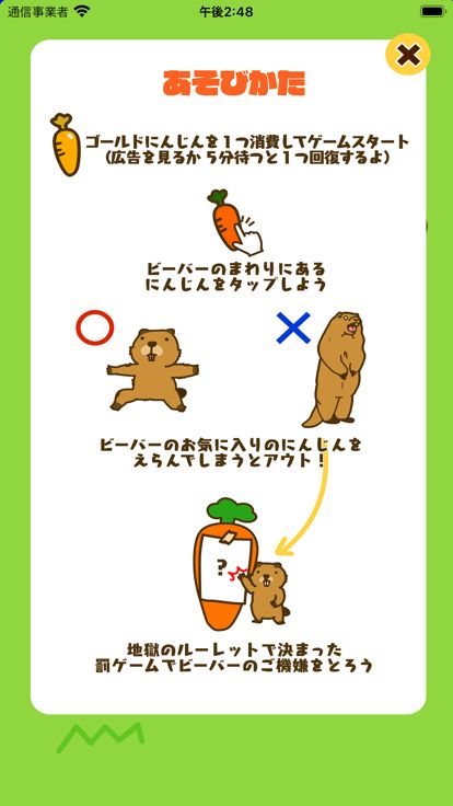 10本のにんじんを1人ずつ引いていき,叫ぶビーバーを回避せよ。