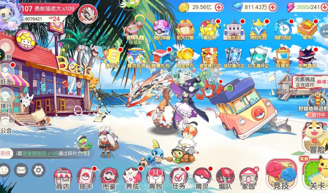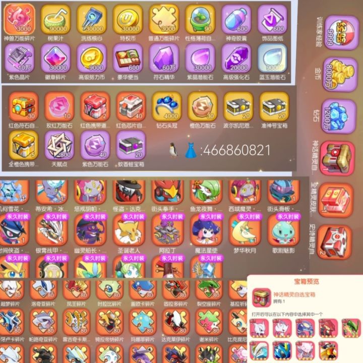 开局V18,28只史诗精灵,5000W金币,358W钻石,丰源三傻皮肤,皮肤自选包5个,豪华便当170个,几千红碎,周年庆里还有神话精灵