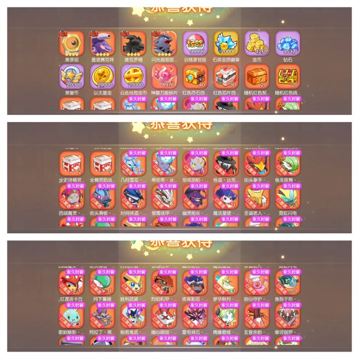 开局V18,28只史诗精灵,5000W金币,358W钻石,丰源三傻皮肤,皮肤自选包5个,豪华便当170个,几千红碎,周年庆里还有神话精灵