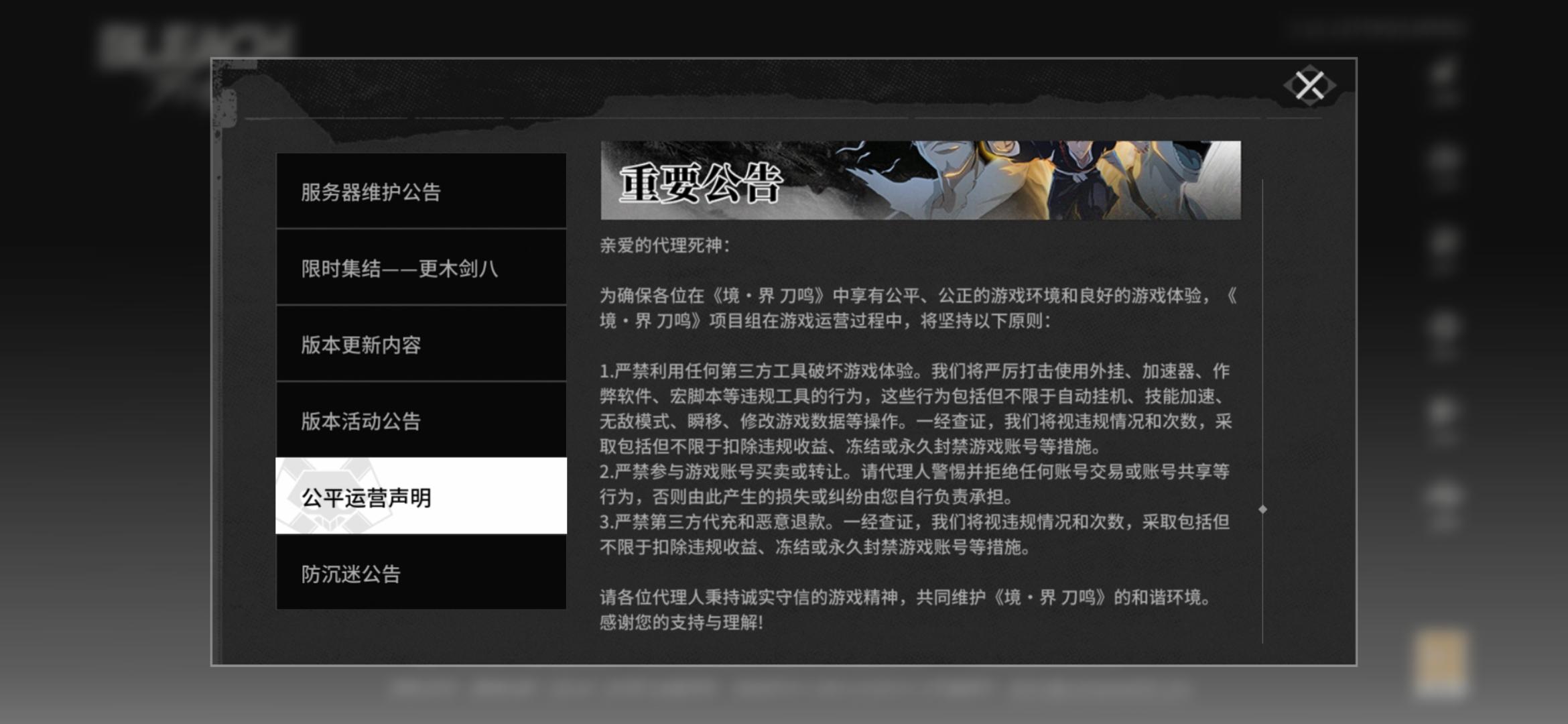 白哉加减抗持续时间加长,新组套,看了这个重要公告是真的气人,什么叫“我们将视违规情况和次数,采取包括但不限于扣除违规收益,冻结或永久封禁游戏账号等措施”。是不是刷钥匙的那些人号要没了。