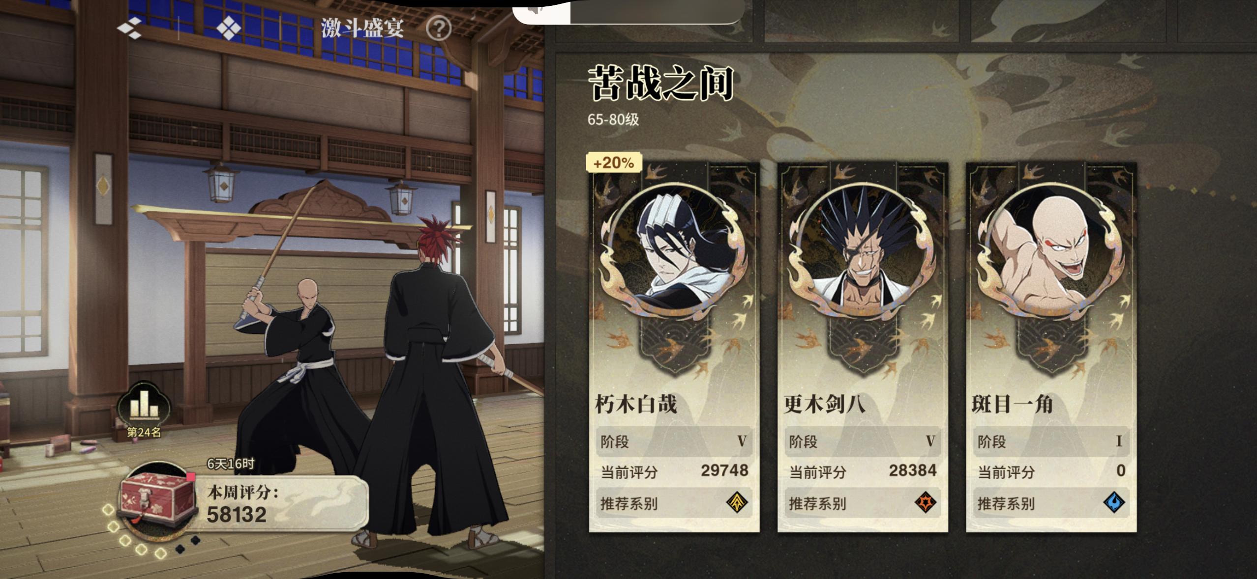 打4阶差一点就把时间耗光了,打队完全就是路边一条,数值太拉胯了。没卍户,光一个白哉也没用。有银,但是没有东仙一角,这二队真是一言难尽啊