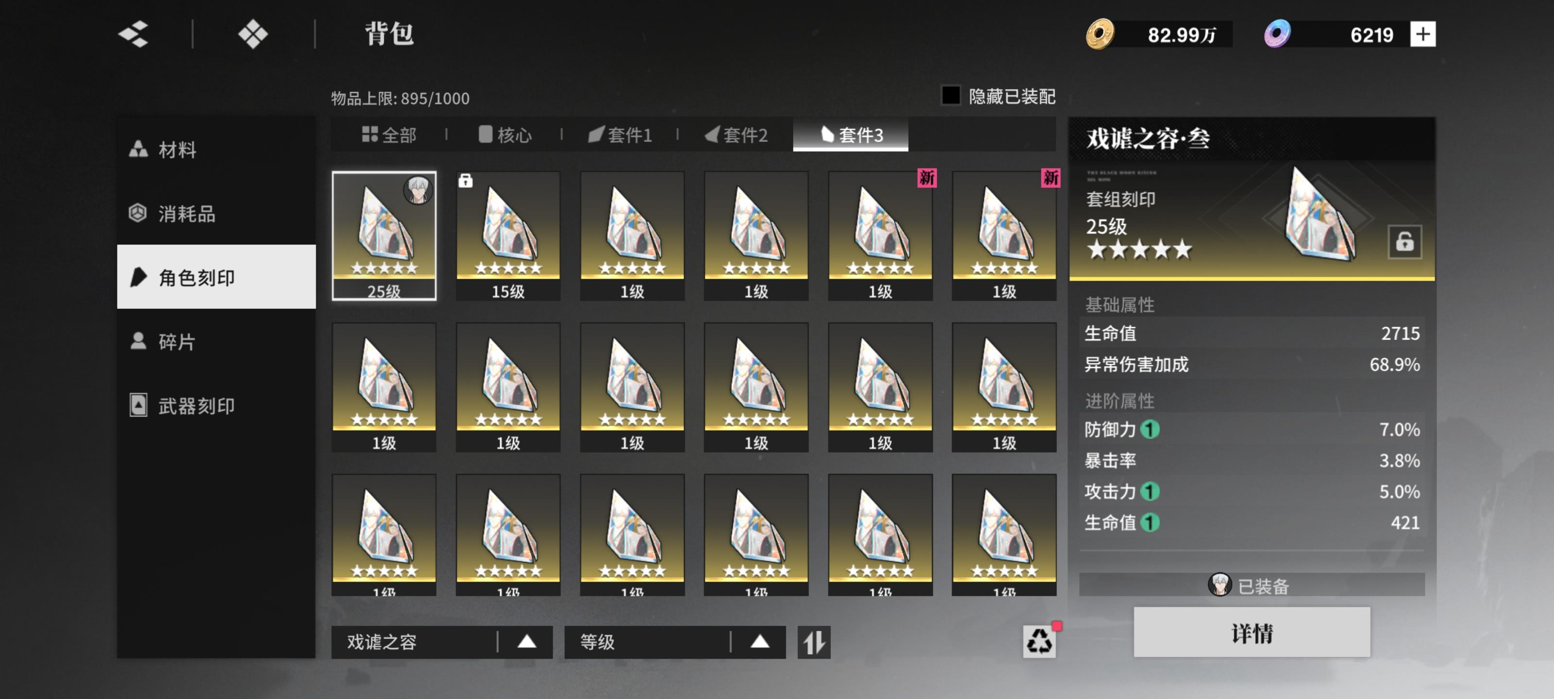 大小月卡玩家,从市丸银出来就每天刷刻印,不说什么完美词条,直到昨天晚上第二个刻印才刷出来两个暴击率主词条,其他全部歪,我刷了将近整整20天,每天体力清空,真的不追求完美,但希望真的不要刷刻印纯看脸,体验感太差了。