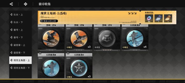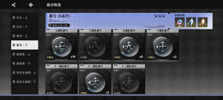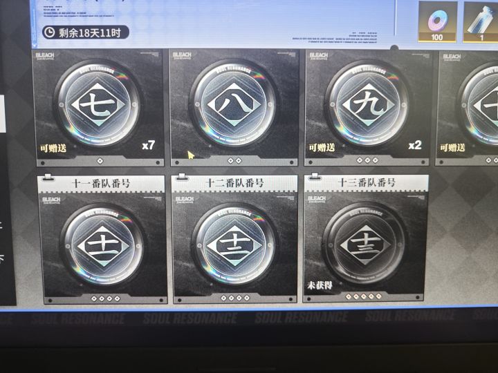 uid:108049587 缺黑崎一护、茶渡泰虎A、死神代理证、石田雨龙C、井上织姬B、井上织姬C、茶渡泰虎B、十番队副官章、十一番队副官章、十二番队副官章、三番队番号、六番队番号、十一番队番号、十二番队番号、 十三番队番号、蓝染惣右介、更木剑八、涅茧利