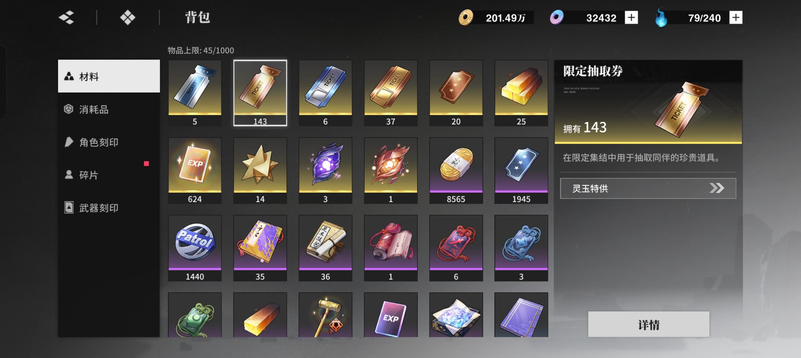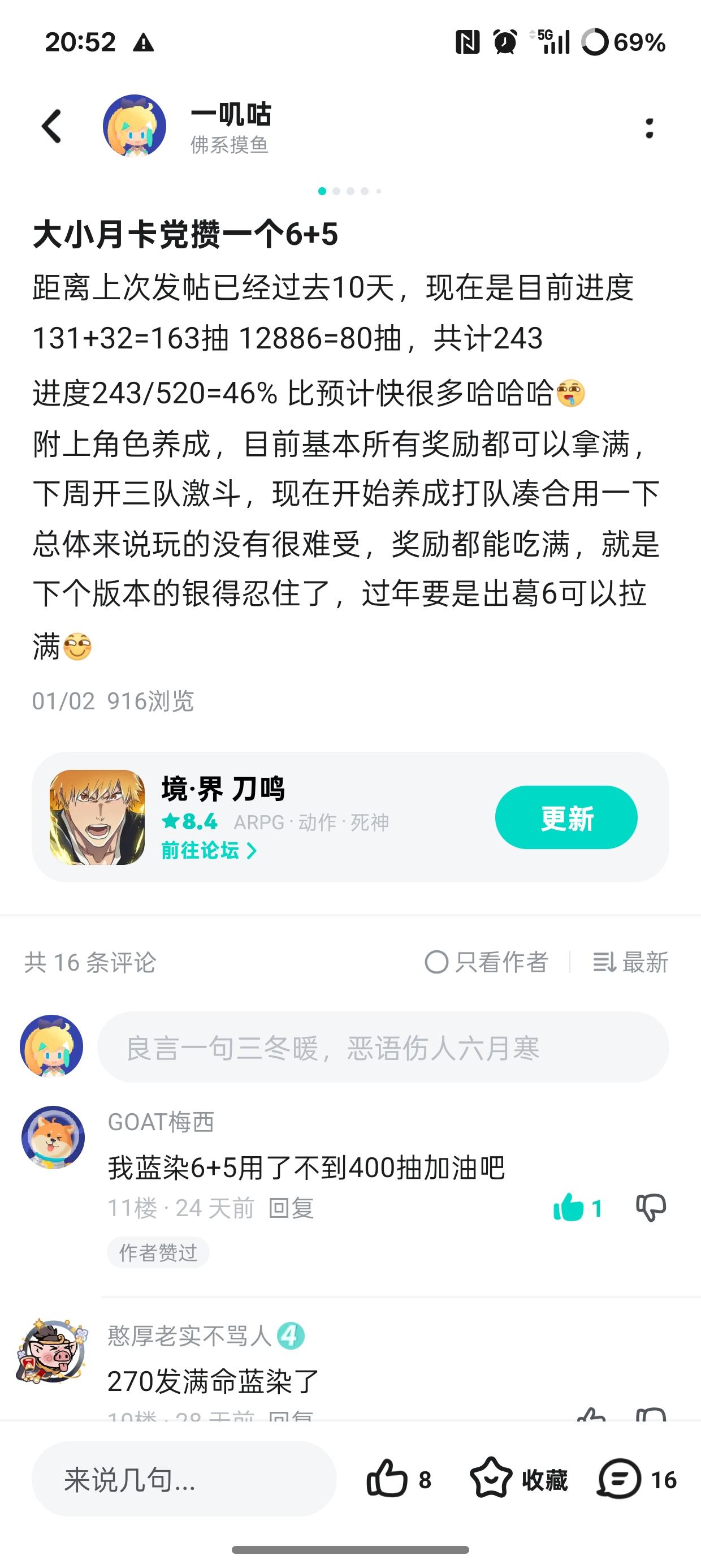 我是从一户卡池后面开始攒的,距离上次记录过去了一个月,目前也是攒到了221+143+37=401抽,预计到年后应该能攒到6+5了