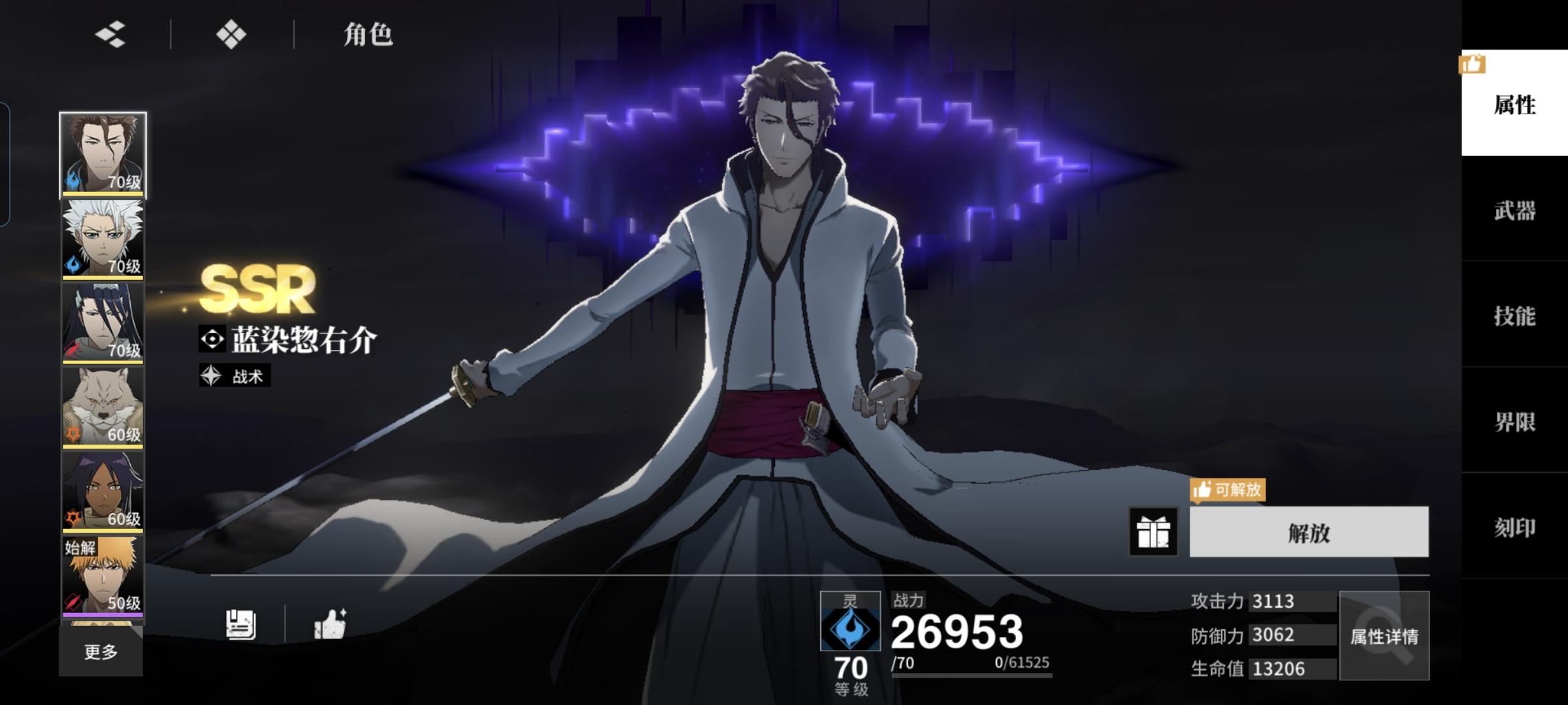 这视频主要是角色属性,我蓝染才1+1带蓝染还没东仙强,因为带蓝染有85%的减伤