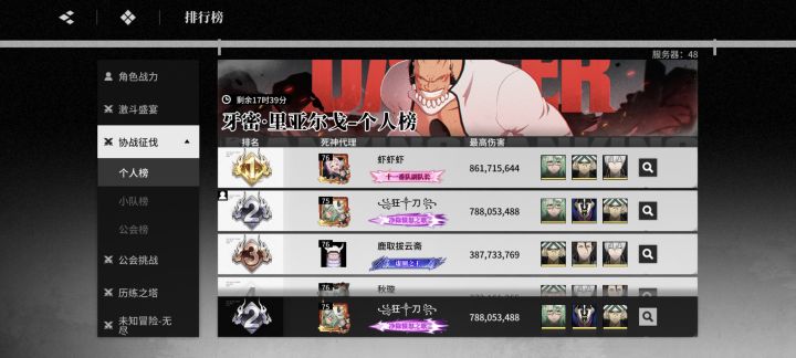 前十唯二用蓝染打的,活动已进前十本不想凹的,前面这个家伙用妮露试用比我高?蓝染645,店长都没拉满,凹了两小时硬是上不去