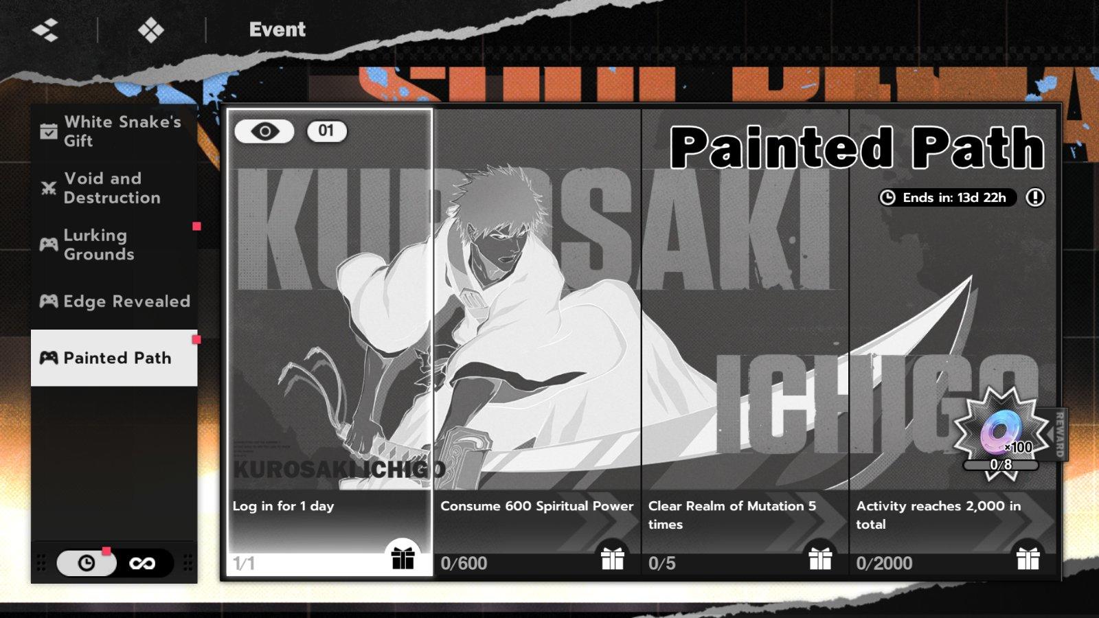 绘画活动在游戏中,你需要完成各种活动才能完成一护的画作,而且你必须将整幅画作涂满两遍才能获得所有奖励保底#境界刀鸣